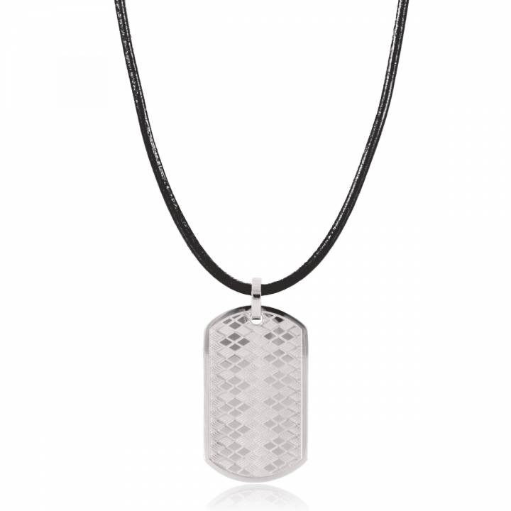 Leather & stainless steel for man Losange Necklace from the Murat Paris brand, an fashionable jewellery item from their latest collection. Necklace easy-to-wear everyday or an attractive gift for man to offer throughout the year, whatever the occasion. A jewel combining a touch of black as the perfect finishing touch. Necklace in quality leather & stainless steel that combines an original design and unique look.